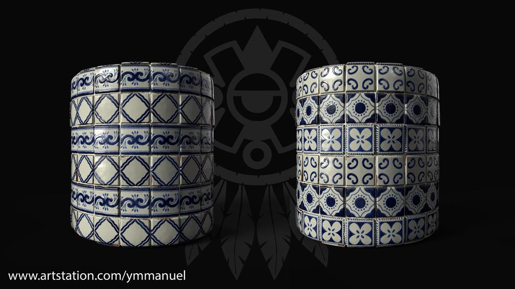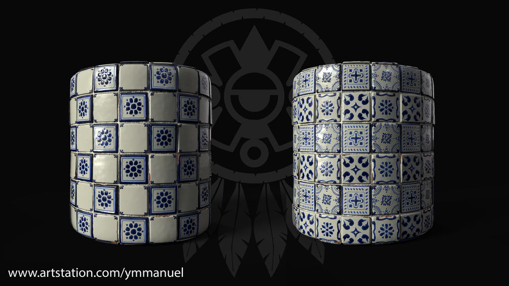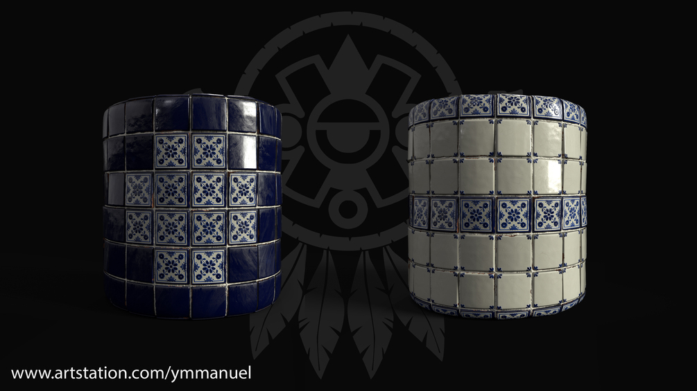 This material features a traditional Mexican Talavera material. Included is an *.sbsar file
